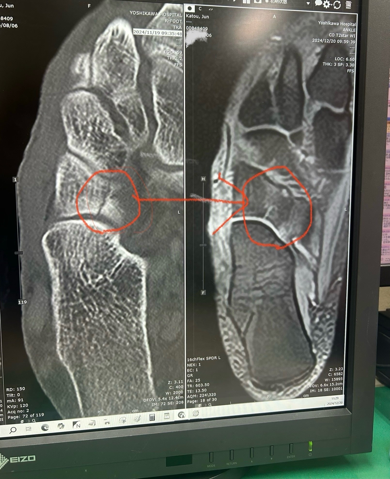 1ヶ月後の検診で2/3の骨の接合。回復を達成し、医師を驚かせました。こ