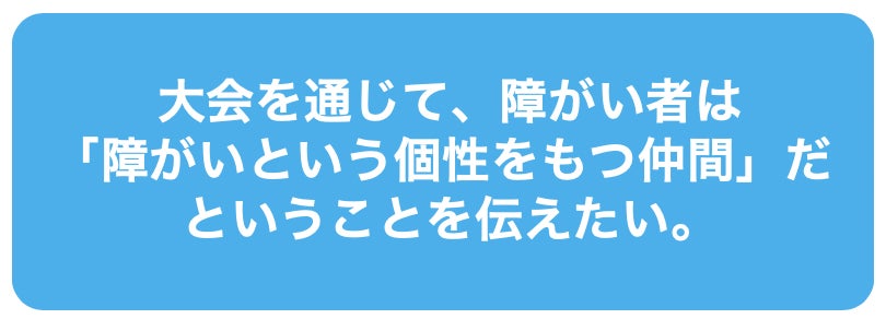 障がい者が思う存分個人の能力や努力、熱意を発揮する場を作って、「障がいがあるというだけで区別するのはおかしい!」ということを再認識する場を作りたいと考えました。
