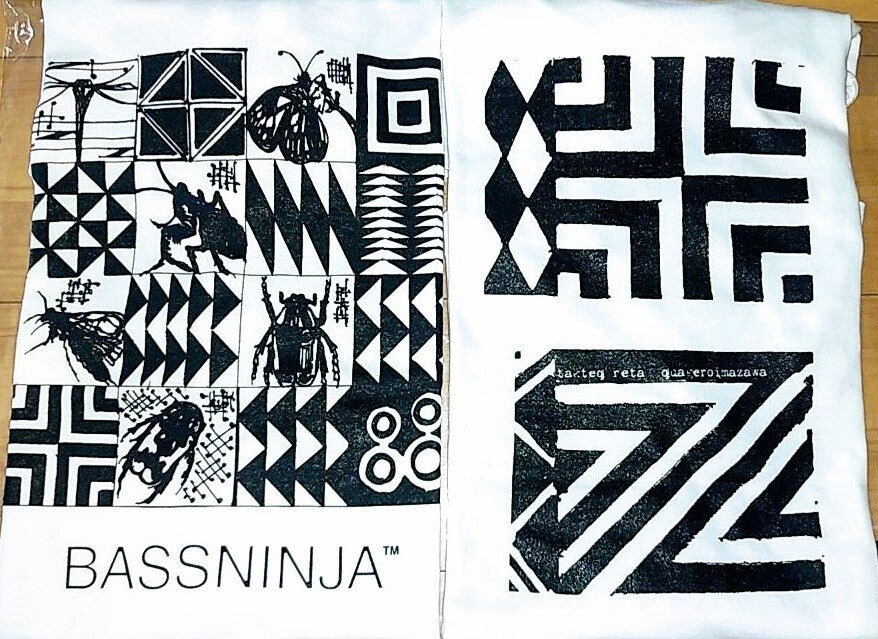 ・BASSNINJA ルワンダの伝統的なデザインとそれを模した昆虫コラージュTシャツ