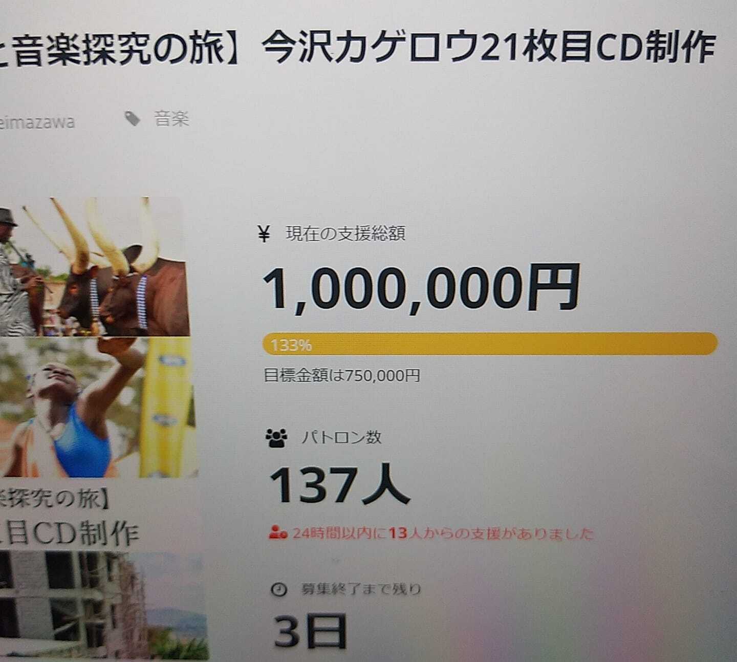 あと3日で このクラウドファンディングも終了