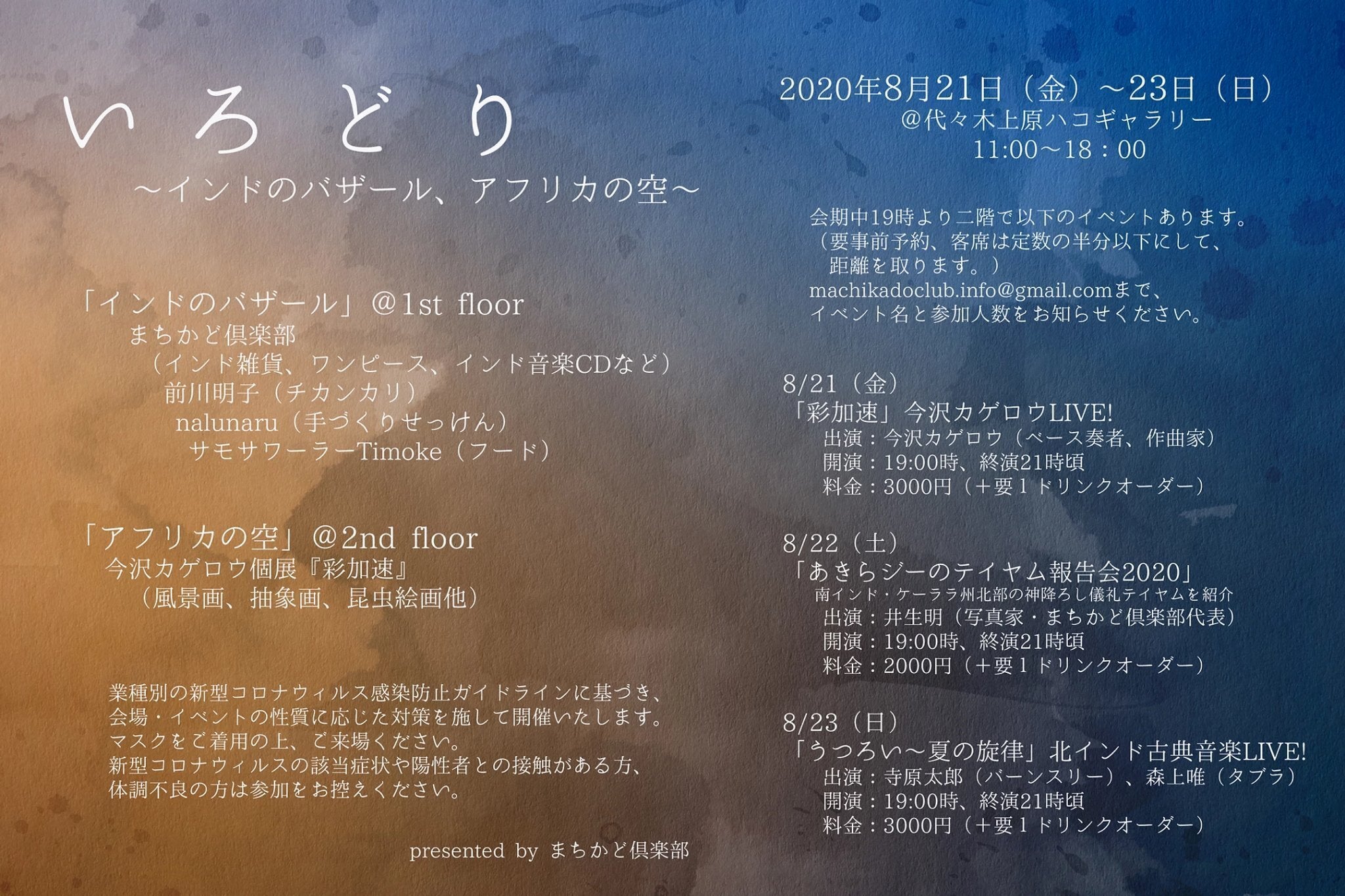 21日(金)19時からは2nd floor奥のステージで ソロライヴ「彩加速」を行います