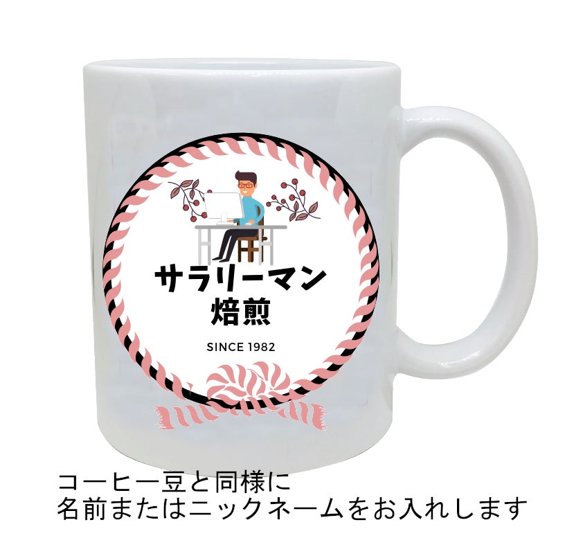 名入りのマグカップとコースターも準備しておりますので、ご一緒にいかがでしょうか。