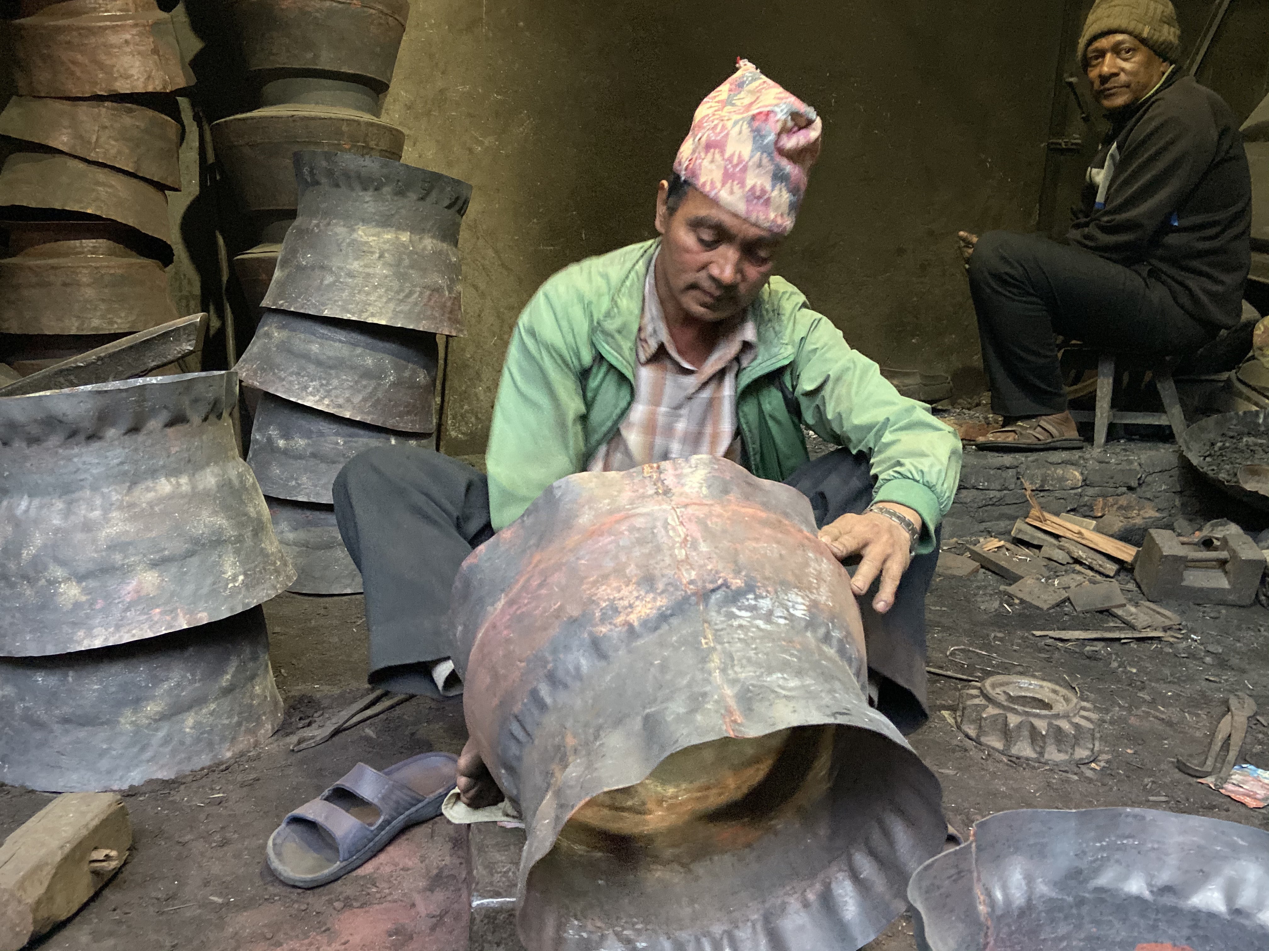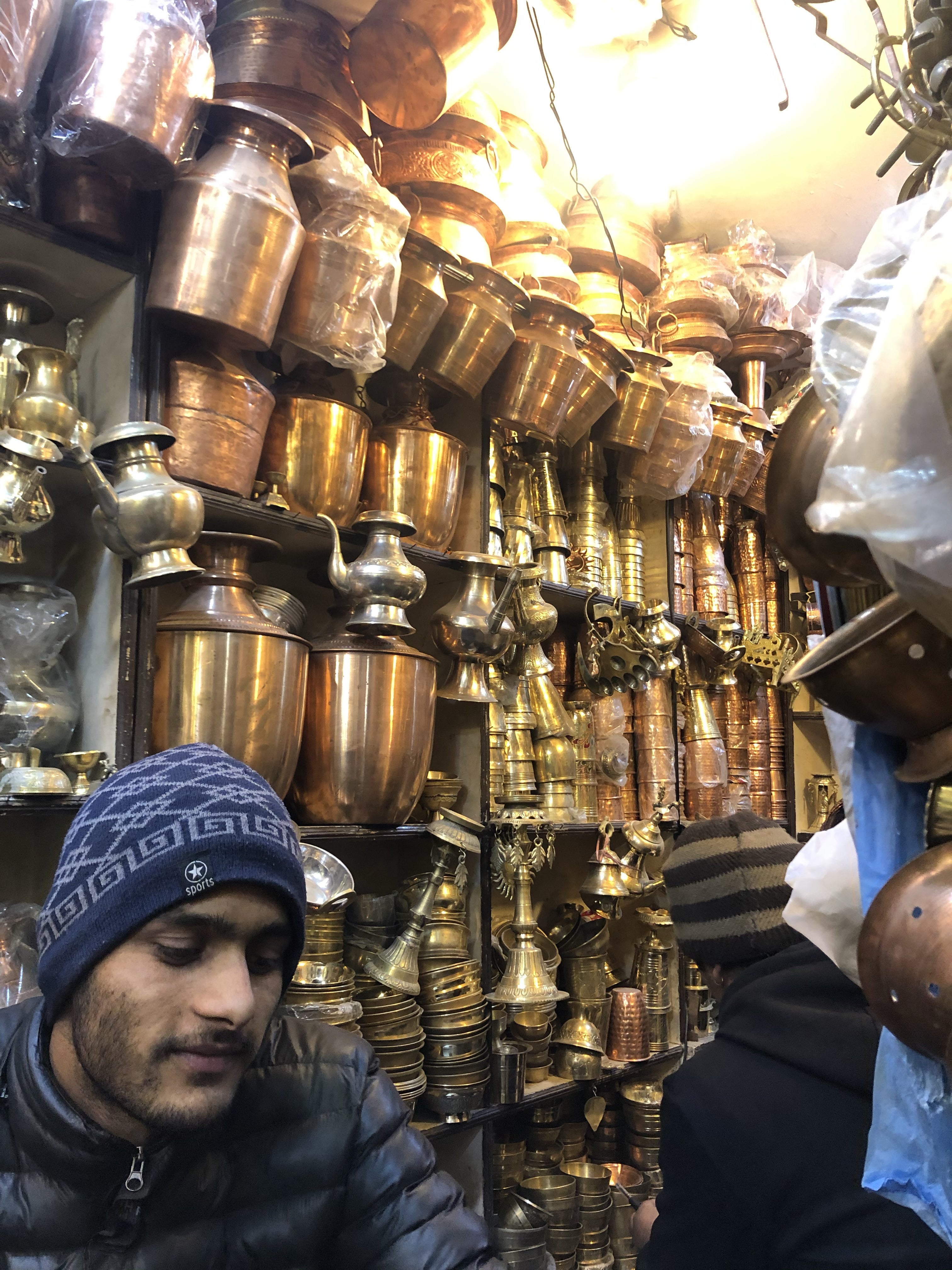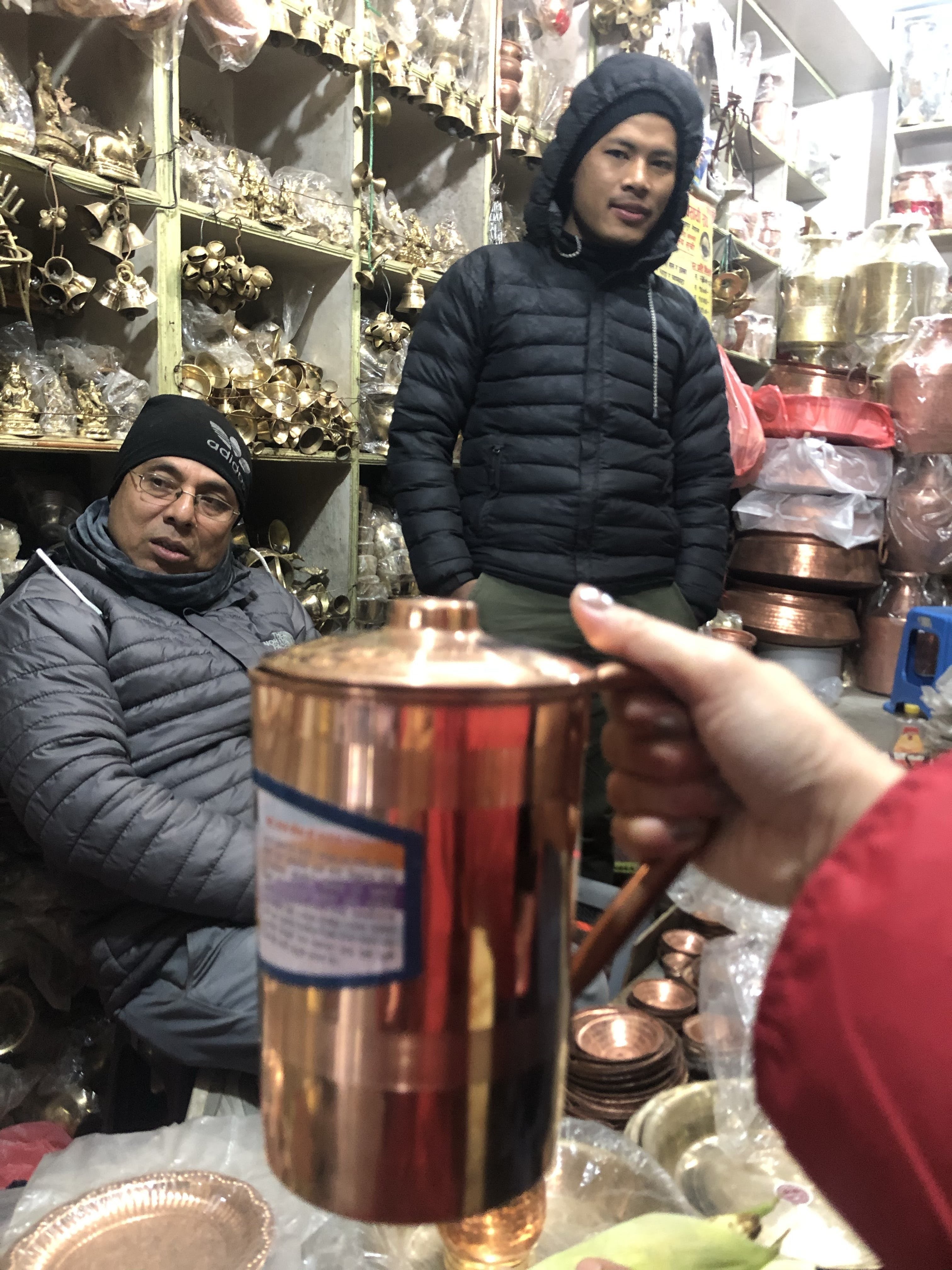 カトマンズでは、以前からお知らせしていた新パッケージの茶缶づくりのため、いくつもの銅・真鍮の食器を扱う卸業者さんを訪ねました。