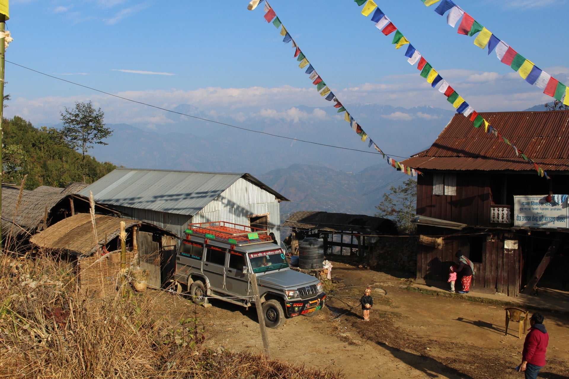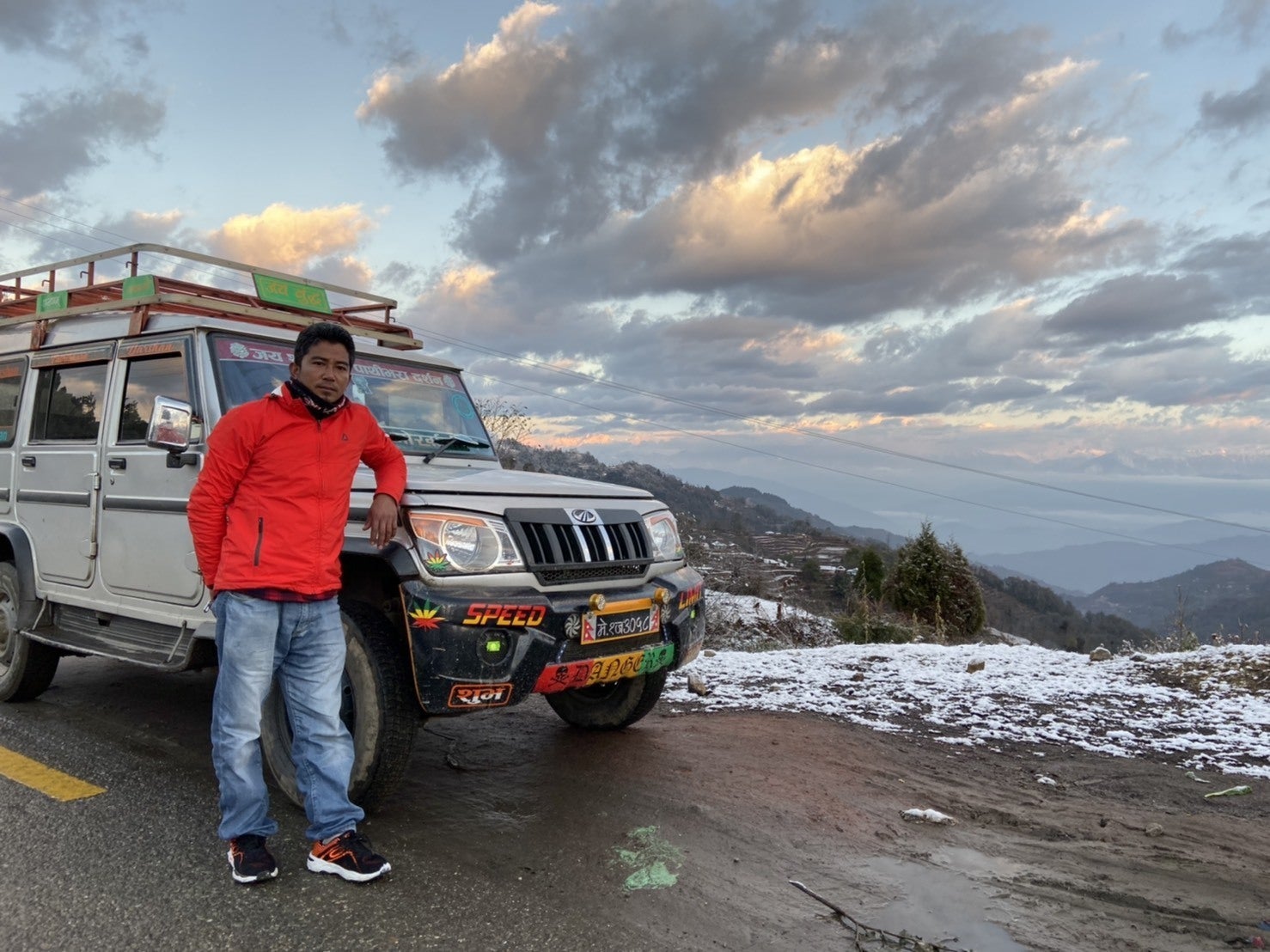 まずは、カトマンズをバスで出発し、約13時間をかけてジャパ群ビルタモードに向かいました。ビルタモードはまだ過ごしやすく、「この頃は」まだまだ余裕の私たちでした。というのもジャパ群は、緯度的には日本の奄美大島と同じくらいですので、山の上でない限り、1月でも日中は温かいのです。そのビルタモードで凄腕の四駆運転手さんサントスさんと落ち合い、いよいよ茶畑のあるパンチタル群のPhatiavra Tea Estateに向けて出発!