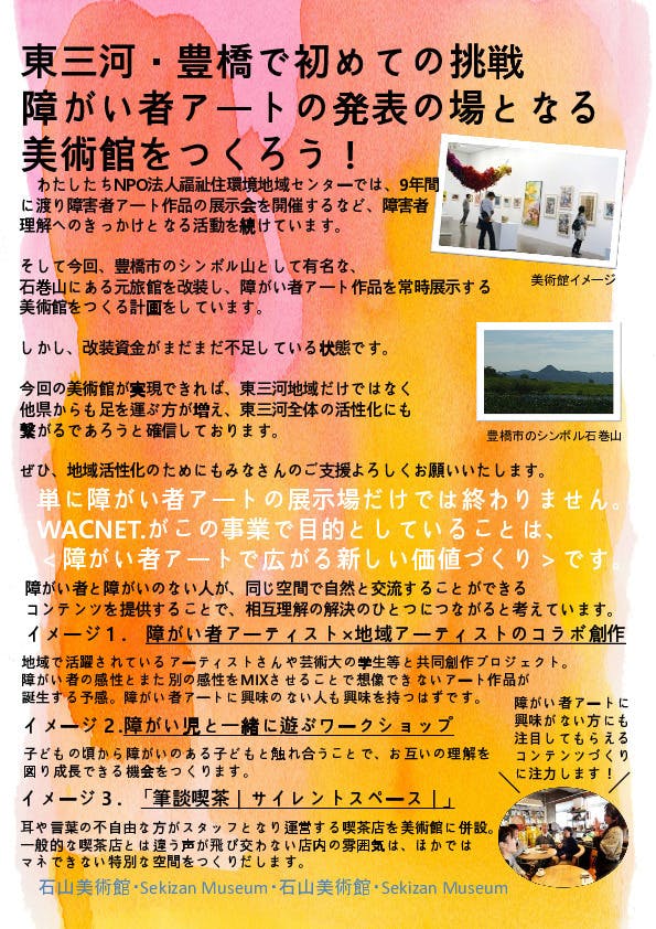 障がい者のアートプロジェクト!アートコンテストを開催し、その応募作品を展示する美術館の改装をします!