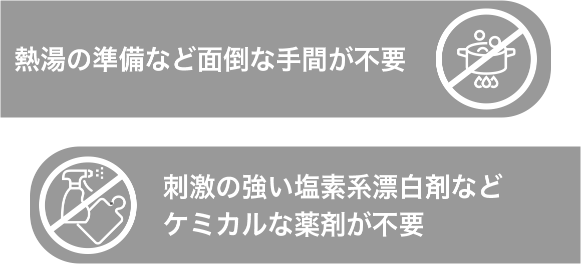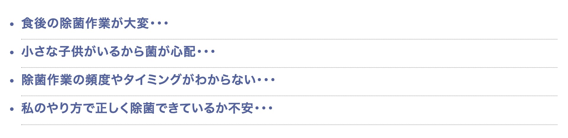 A. 除菌作業をする煩わしさを排除したうえで、同等の効果を得られることを目的に設定されております。
