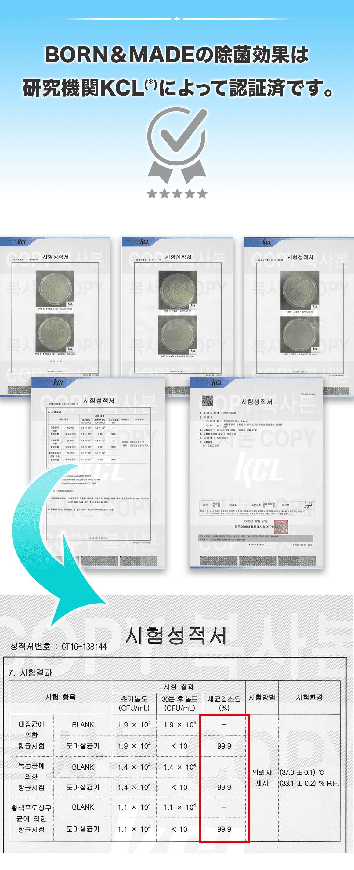 (*)KCL(韓国建設生活環境試験研究院)は韓国で最も権威のある試験認証機関の一つです。
