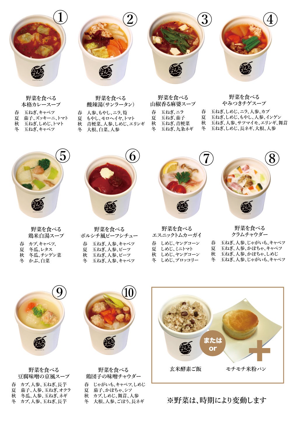 何度も試食会を重ねて考案した、下記の10種類のベースのスープ。