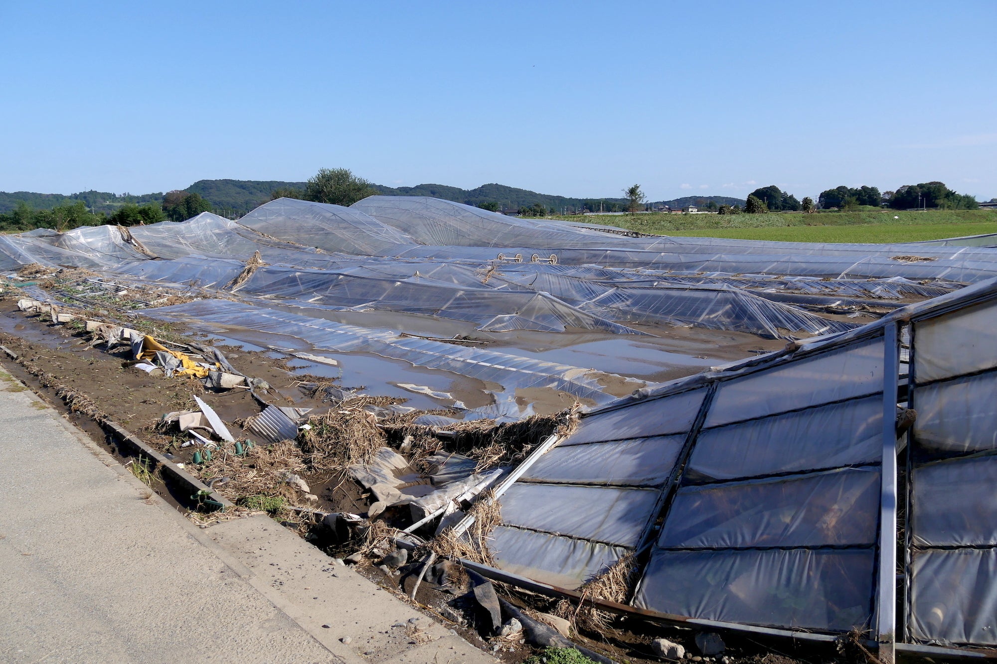 さらに追い討ちをかけるようにビニールハウスの倒壊や、新しく購入したばかりの農機具も浸水してしまったためにトラクターなども故障。1軒の農家だけでも1500万円〜2000万円の損害見込みとのこと。今年の収穫は諦める農家さんも多いようで、来年度の収入見込みはほとんどない。