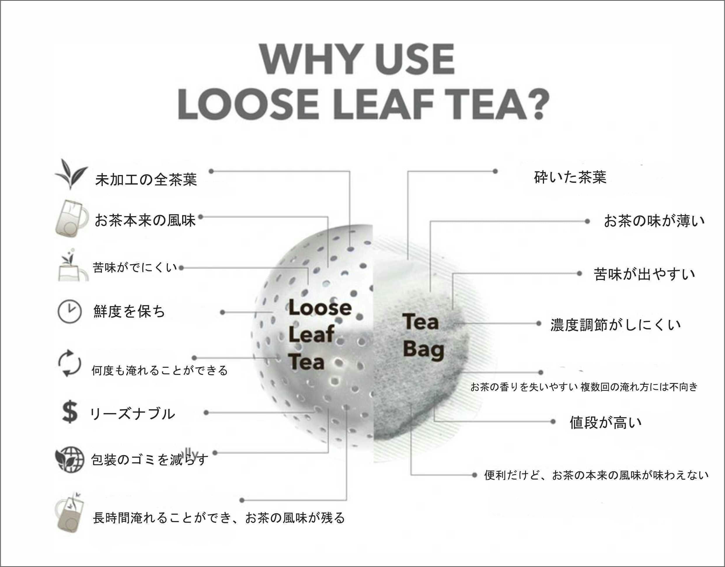 ルースティーを購入する際に、茶葉の形を見たり、香りを直接嗅いだりすることができるので、お茶の良し悪の区別がつきやすいです。しかし、ティーバッグはそうではありません。ティーバッグに入っている茶葉は細かく刻んで小さな袋に入れられ、そのため、茶葉の良さを確認する方法は出来ません。