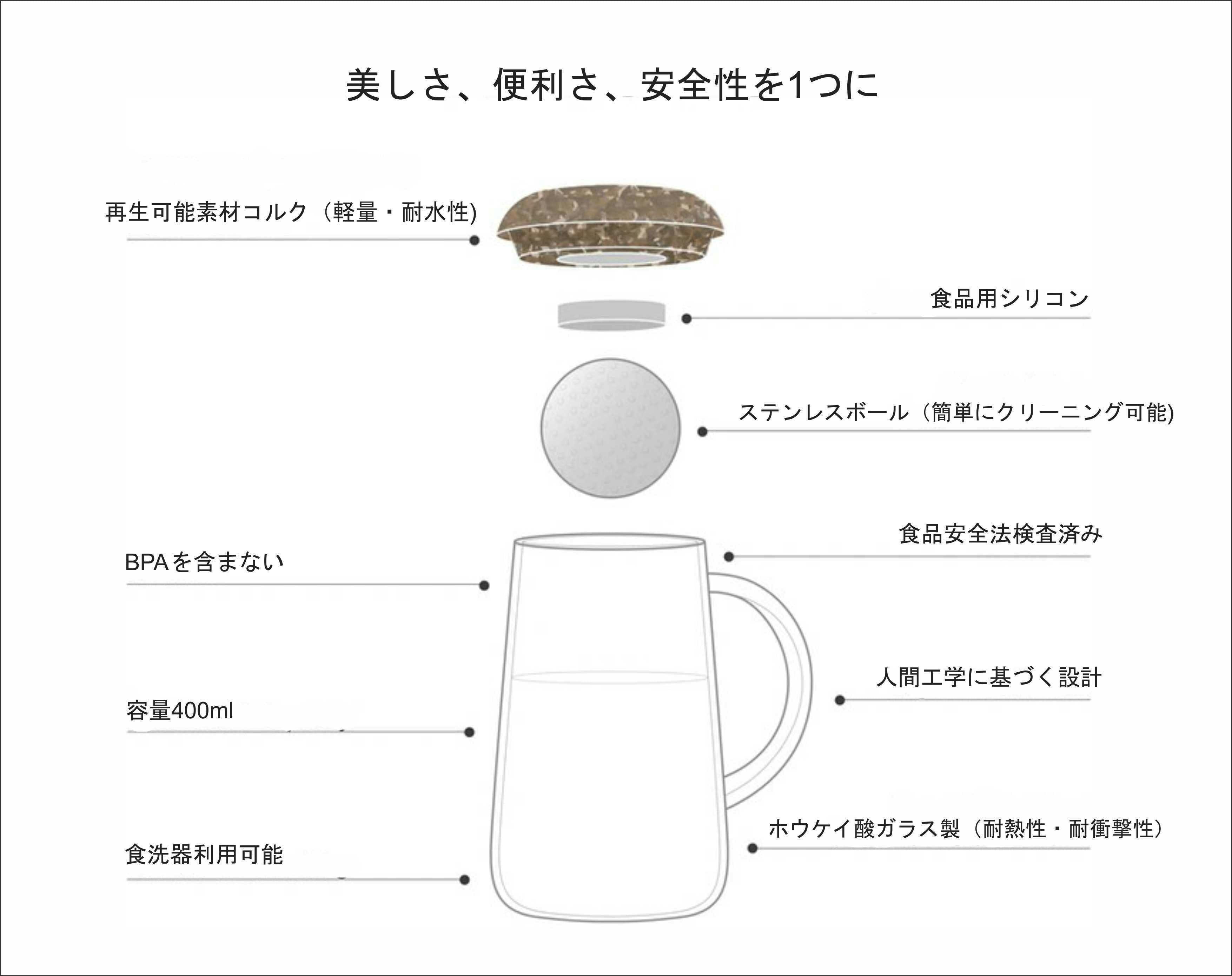 «Oh!t マグネット付き3-in-1マルチティーカップ»は見た目通りシンプルで軽く、厳選された素材のもとで作られて、安心感があります。