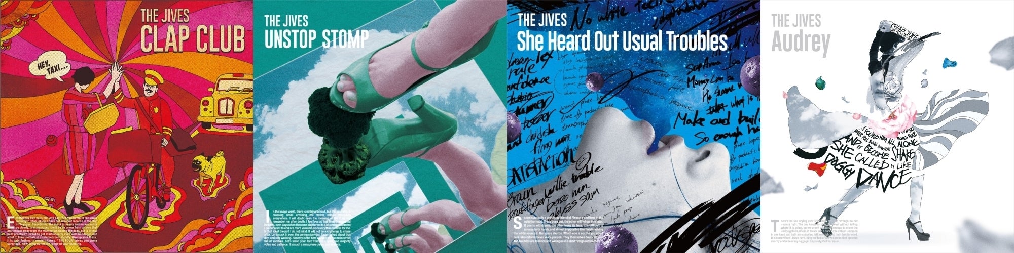 四部作リリースに挑戦する中で発表してきたミュージック・ビデオを抜粋して掲載しました。第1弾から順番に観ていくと、その時々のバンド様子だったり、通してのバンドの変化もどことなく感じるかもしれません。THE JIVESの今は楽曲と共にあります。