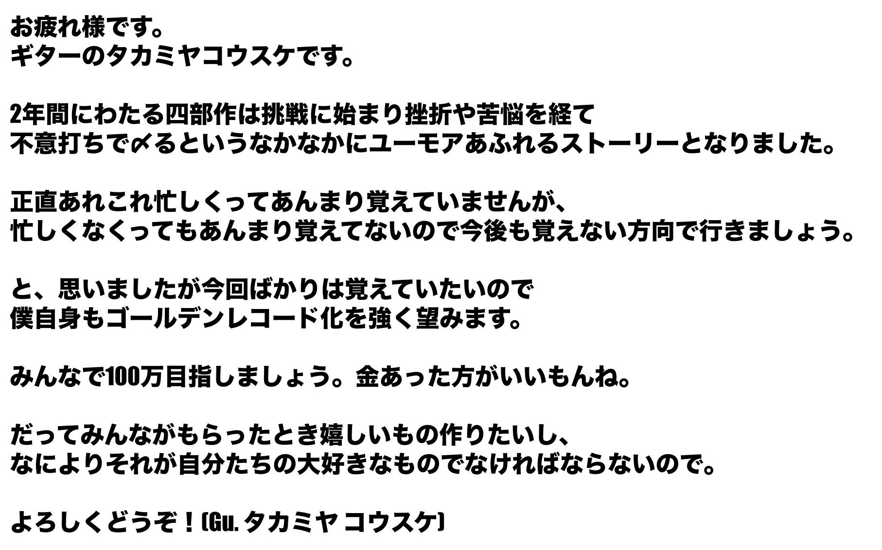 そして今回、僕たちは「四部作という挑戦を様々な形で残したい」という #ゴールデンチャレンジ に挑戦します。