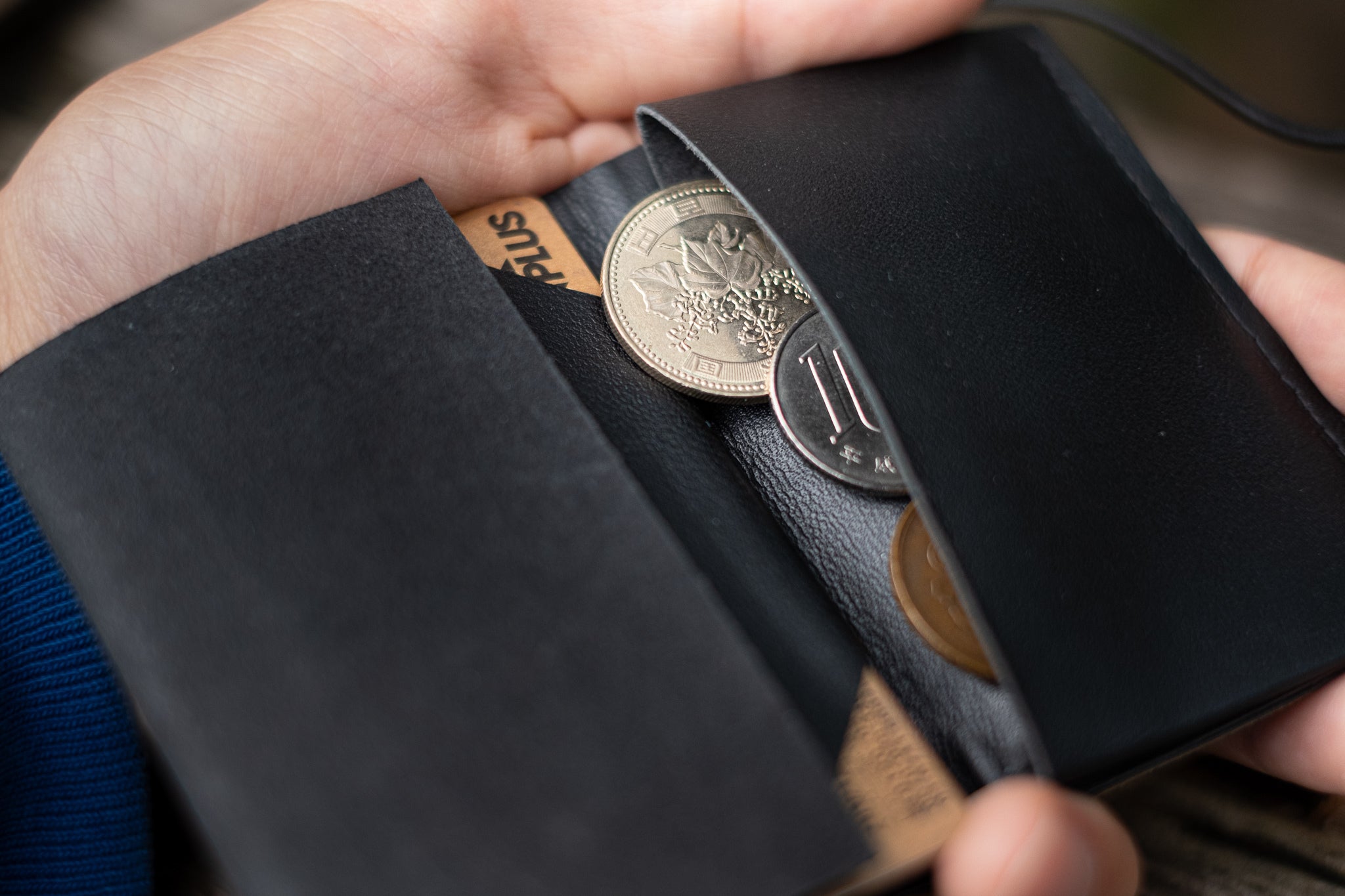 財布本体のサイズは、ほぼ標準的なクレジットカードのサイズと同じ寸法を実現し、極限にまで無駄を削ることで、財布としての存在感もミニマルに。