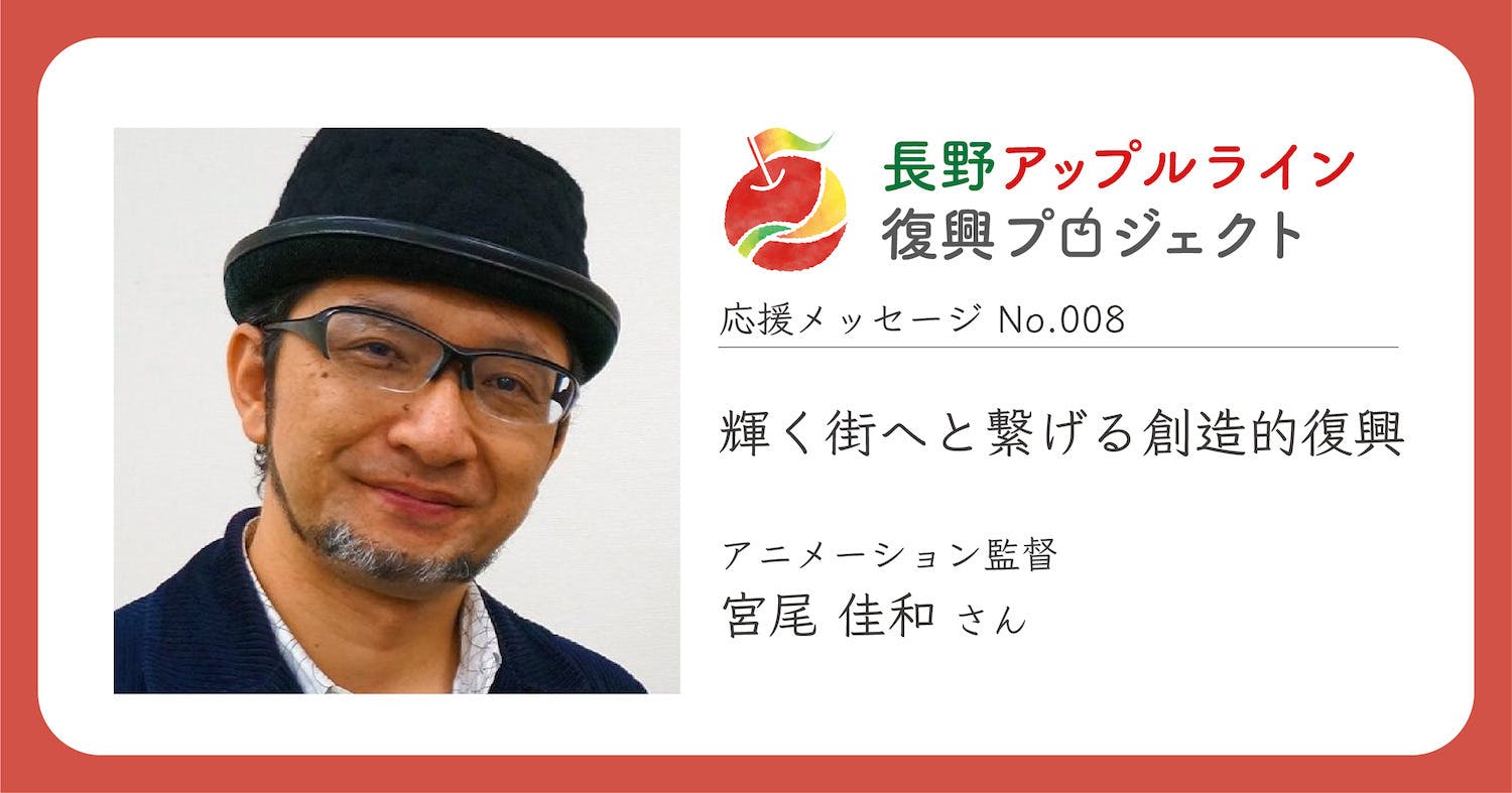 第8回目は、長野市出身であり、サッカークラブ・AC長野パルセイロのマスコットキャラクター『ライオー』のデザインも手掛けたアニメーション監督、宮尾佳和さん。台風19号発生以後、twitter上で積極的に情報発信をしてくださっています。