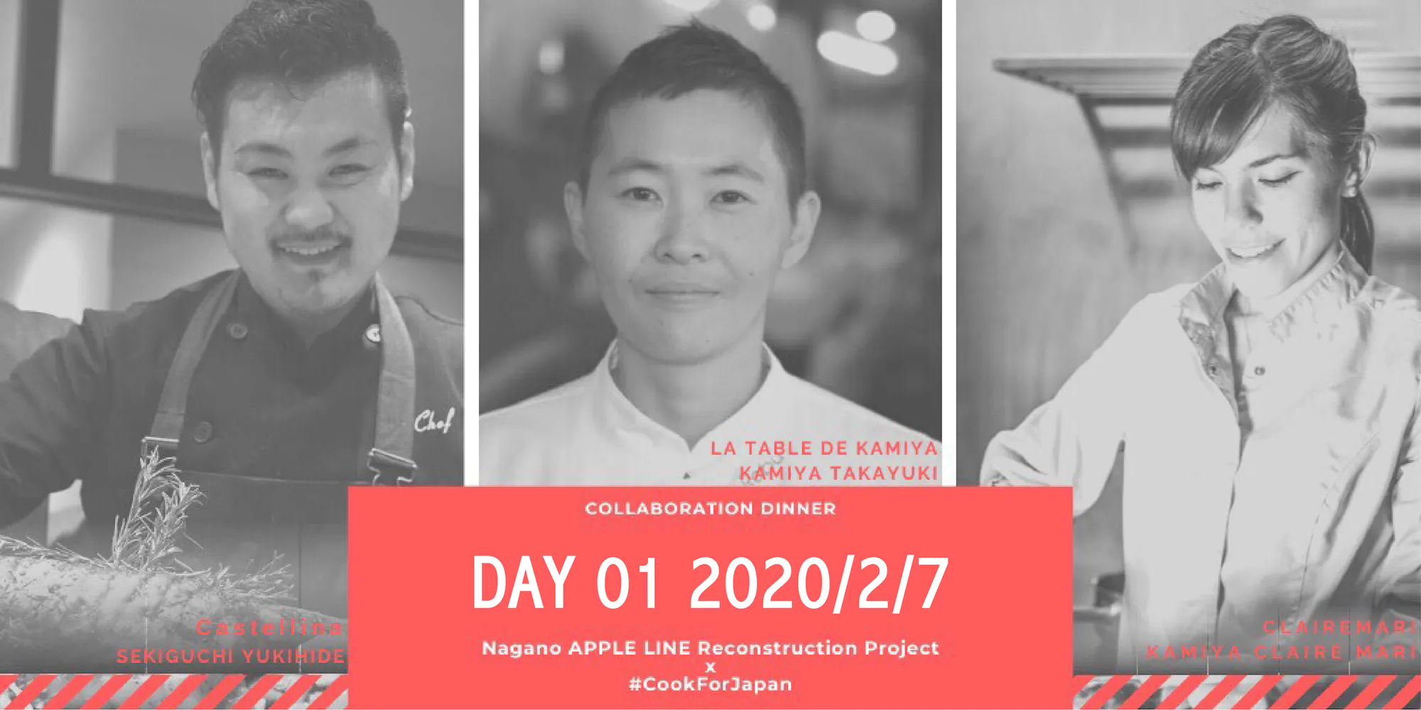 募集終了まで残り1週間を切る12月7日、新しいリターン品「 #CookForJapan × アップルライン復興プロジェクト コラボコースディナー@長野」が追加されます!