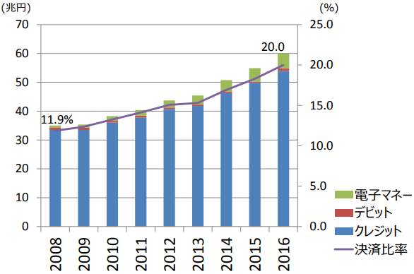 引用先 経済産業省データ:キャッシュレス化推進に向けた国内外の現状認識