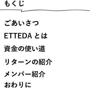 ファンドいただいたお金はこれからのETTEDAにおける活動に充てていきます。