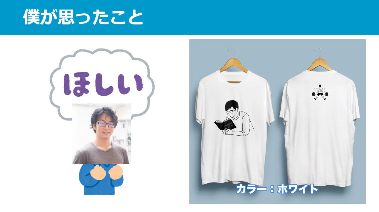プロジェクトを立ち上げるキッカケの1つとなったのは「オリジナルTシャツを作りたい」と思ったからです。