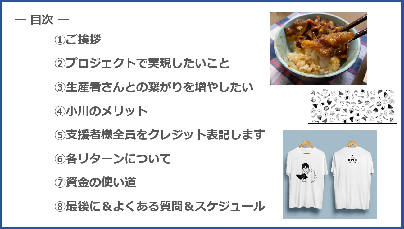 協力、支援して下さる皆さまに精一杯リターンをしますので、どうぞよろしくお願い致します。