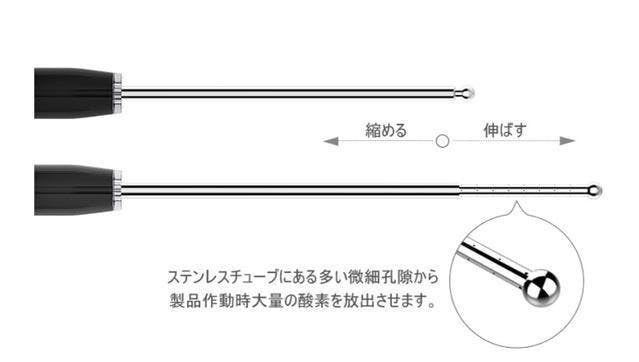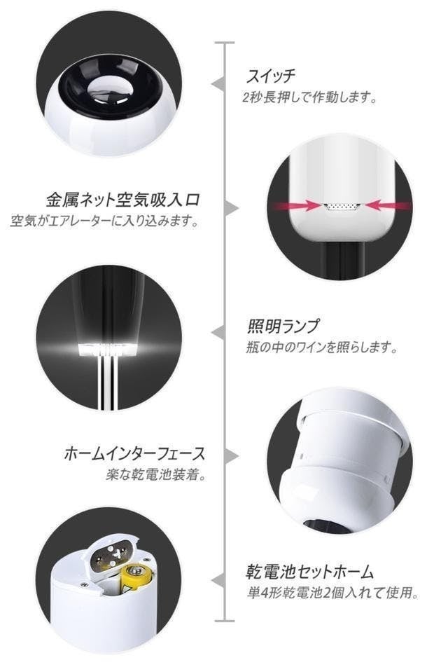 又、2段階伸縮式線形でワインの種類によって異なる瓶の長さに沿って自由自在チューブの長さを調節できます。