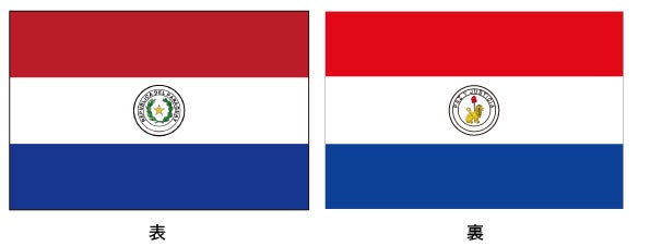 パラグアイの国旗は世界で唯一表裏があり、表面には国章が、裏面にはライオンと自由の帽子があしらわれた国庫証印がデザインされている。また、国旗に用いられる赤、白、青の3色には、それぞれ、『正義、平和、自由』の意味が込められています。