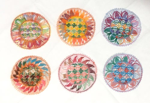 お教室では、ニャンドゥティに惹かれた生徒さんたちがカラフルな糸で一針一針丁寧に刺繍しています。作品が出来上がったときは、この上ない達成感で自然と笑みがこぼれます。