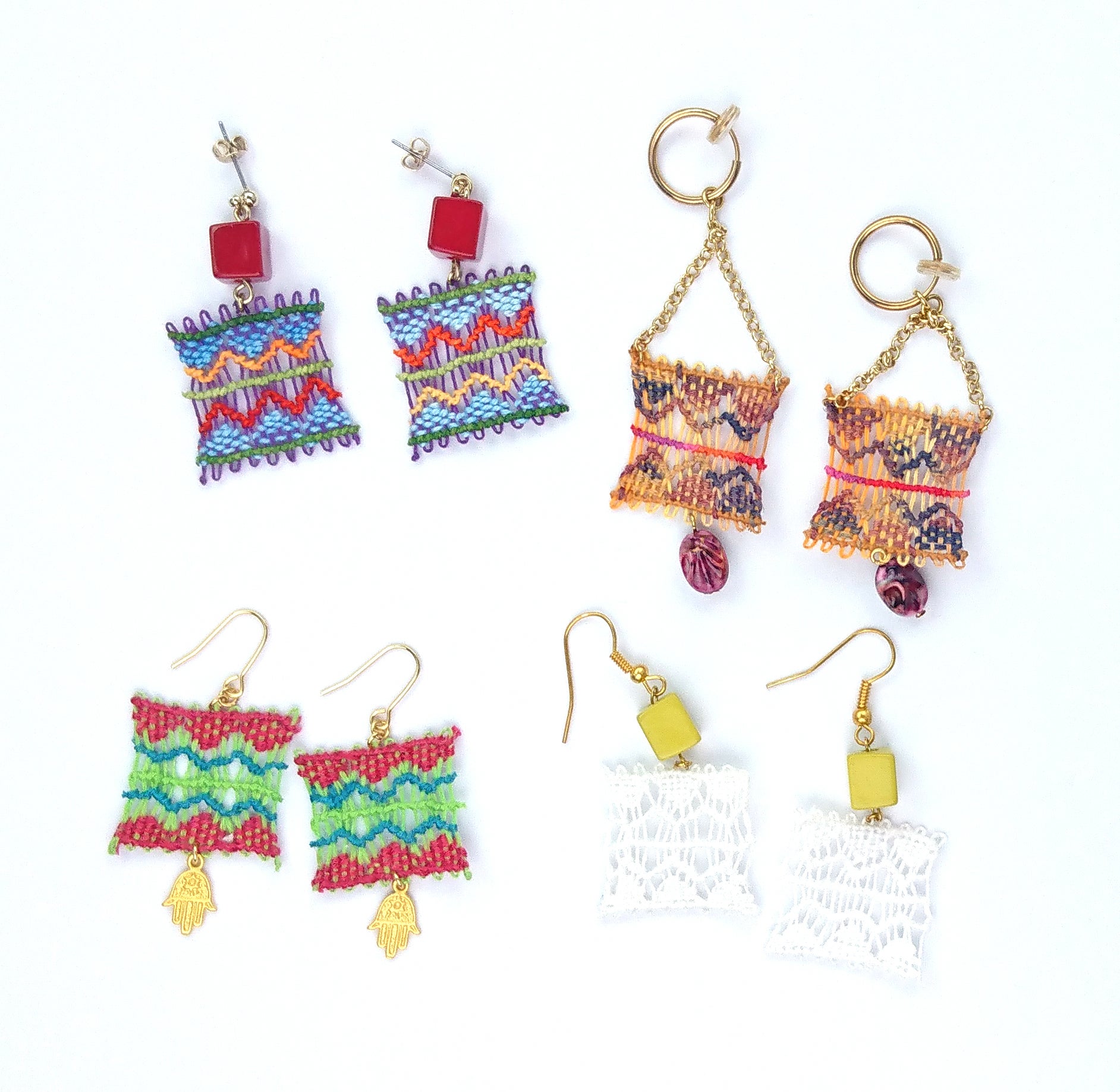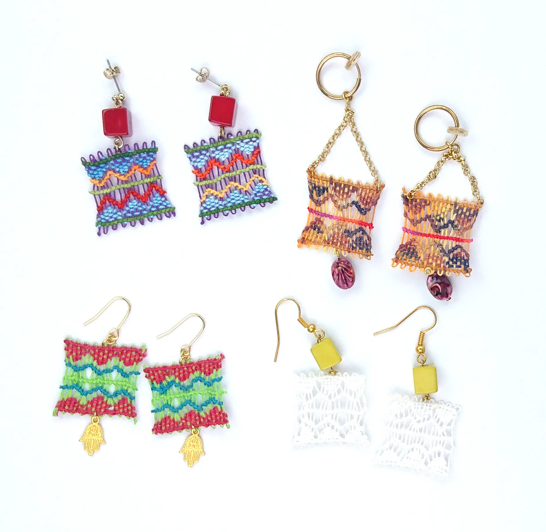 作りはシンプルですがピアスなのでこれぐらいシンプルでもまったくファッション的に気になりません。明るい色から落ち着いている色まで様々なので、皆さんんのお好みで作ってみてはいかがでしょうか♪
