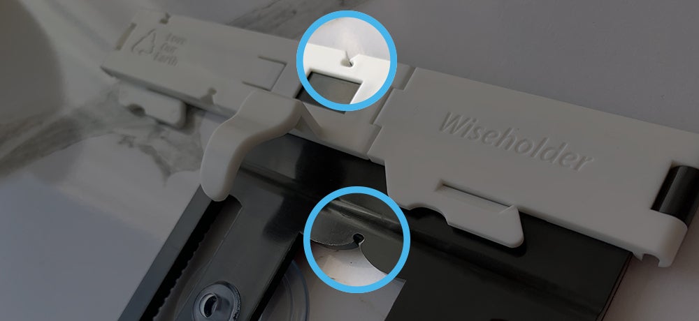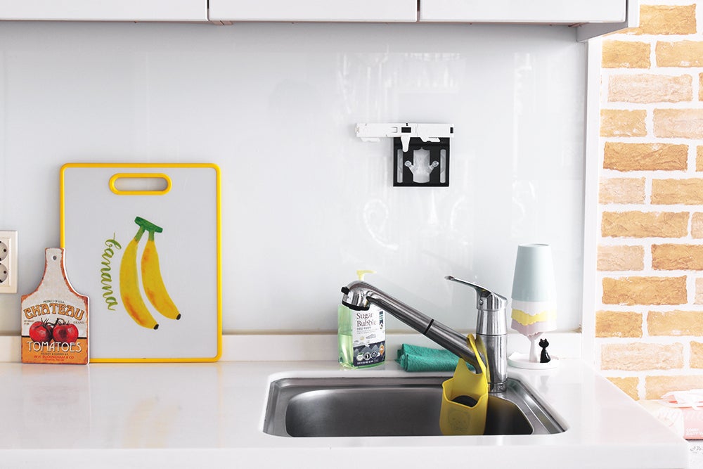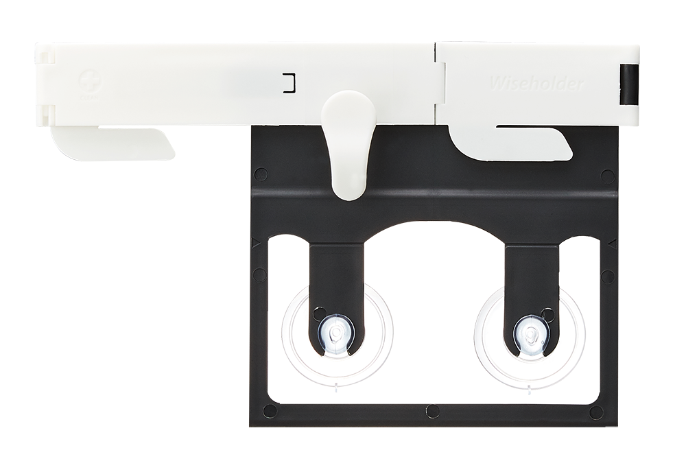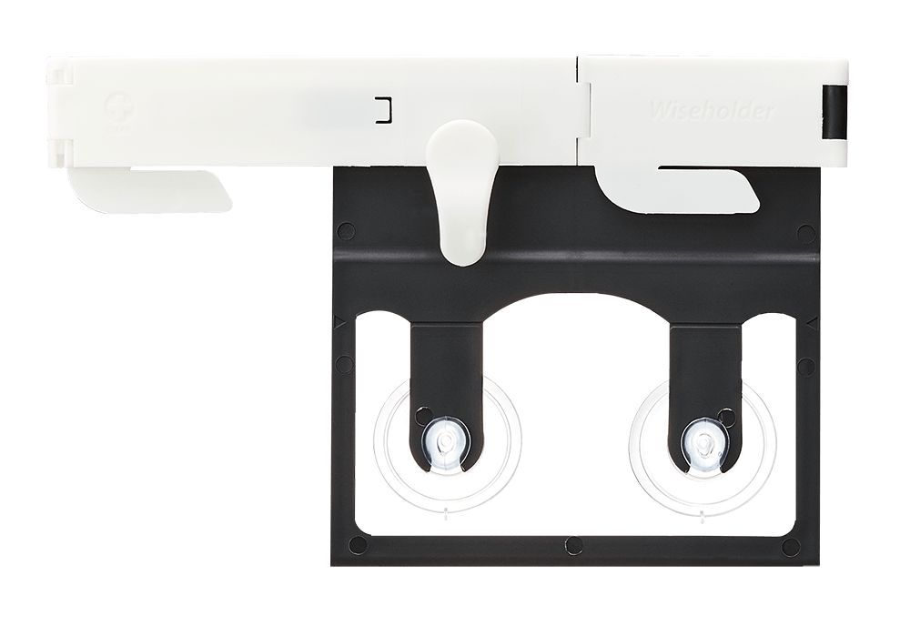 ワイズホルダーは流し台のなかに設置して使⽤可能ですが、流し台以外にも滑らかな平⾯のどこにでもつけることができ、コーナーでだけ使⽤可能な製品に⽐べて設置できる空間が⾃由です。
