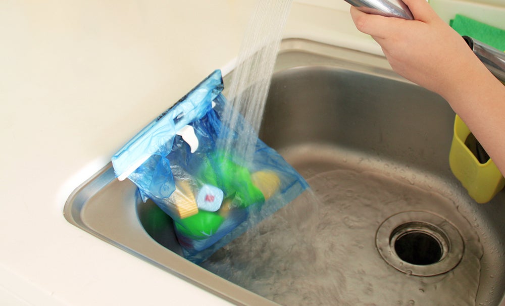 容器を洗浄する必要がなく、生ゴミが袋に付いた場合、水だけで洗い流してください。
