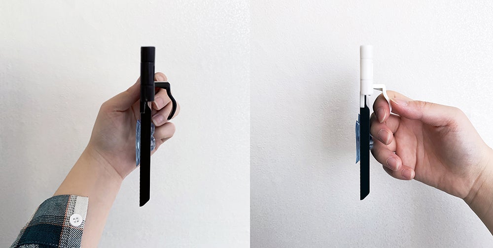 引き金をモチーフにした取っ手は、人体工学的構造により安定的に握られるようデザインされました。