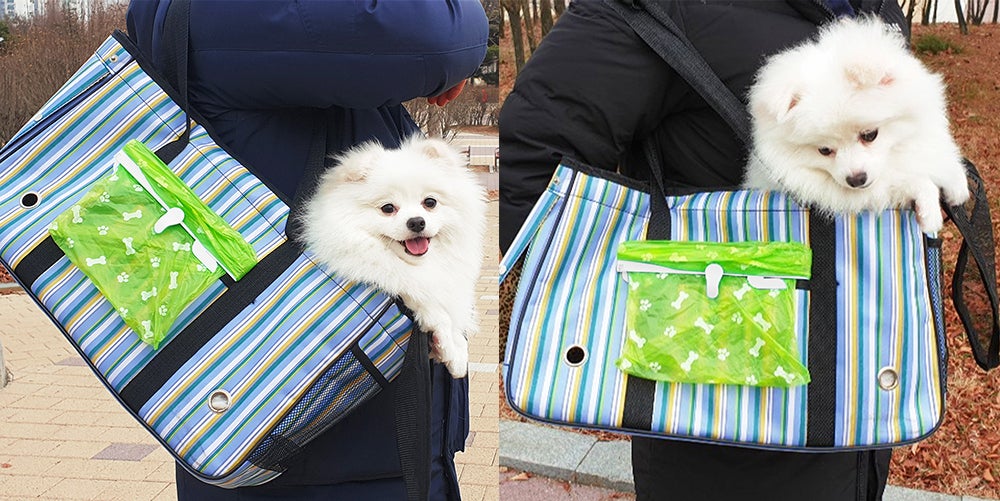 ペットとの散歩の途中も排泄物を別途保管しなくても⼤丈夫です。ペット⽤バッグのポケットに差し込むだけでOKです。