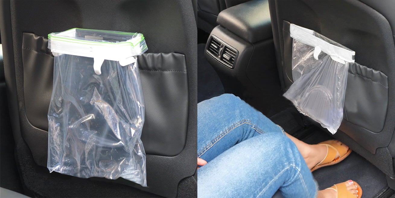 ⾃動⾞シートの後ろのポケットに⼊れておくと⾃動⾞のゴミ箱として使⽤できます。