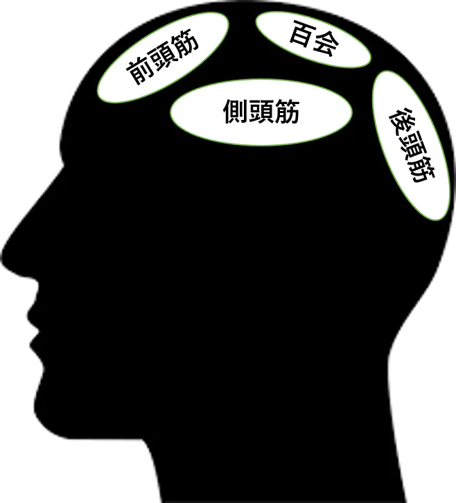 頭の筋肉には「前頭筋」「側頭筋」「後頭筋」と呼ばれる筋肉があります。