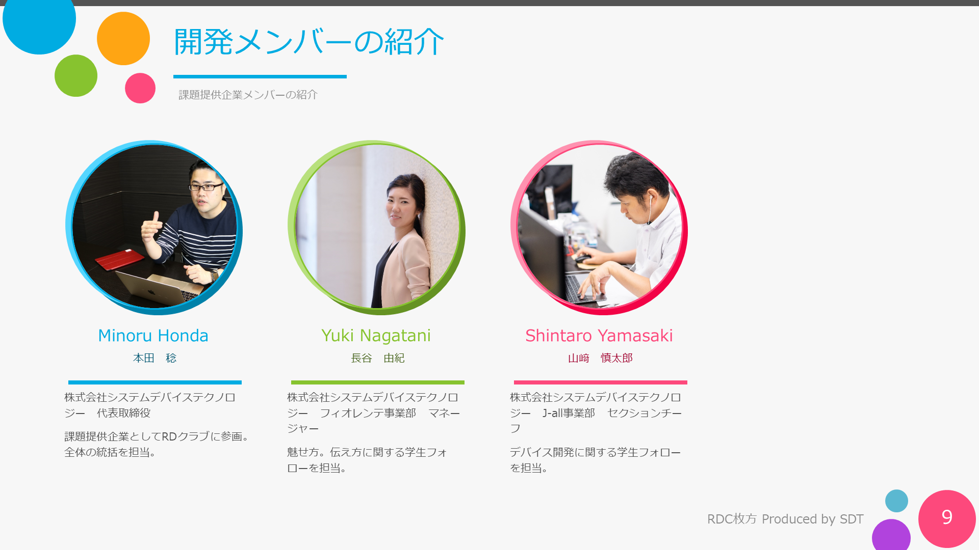 初めまして。私はプロジェクトの責任者を務めております。株式会社システムデバイステクノロジー代表取締役の本田稔と申します。