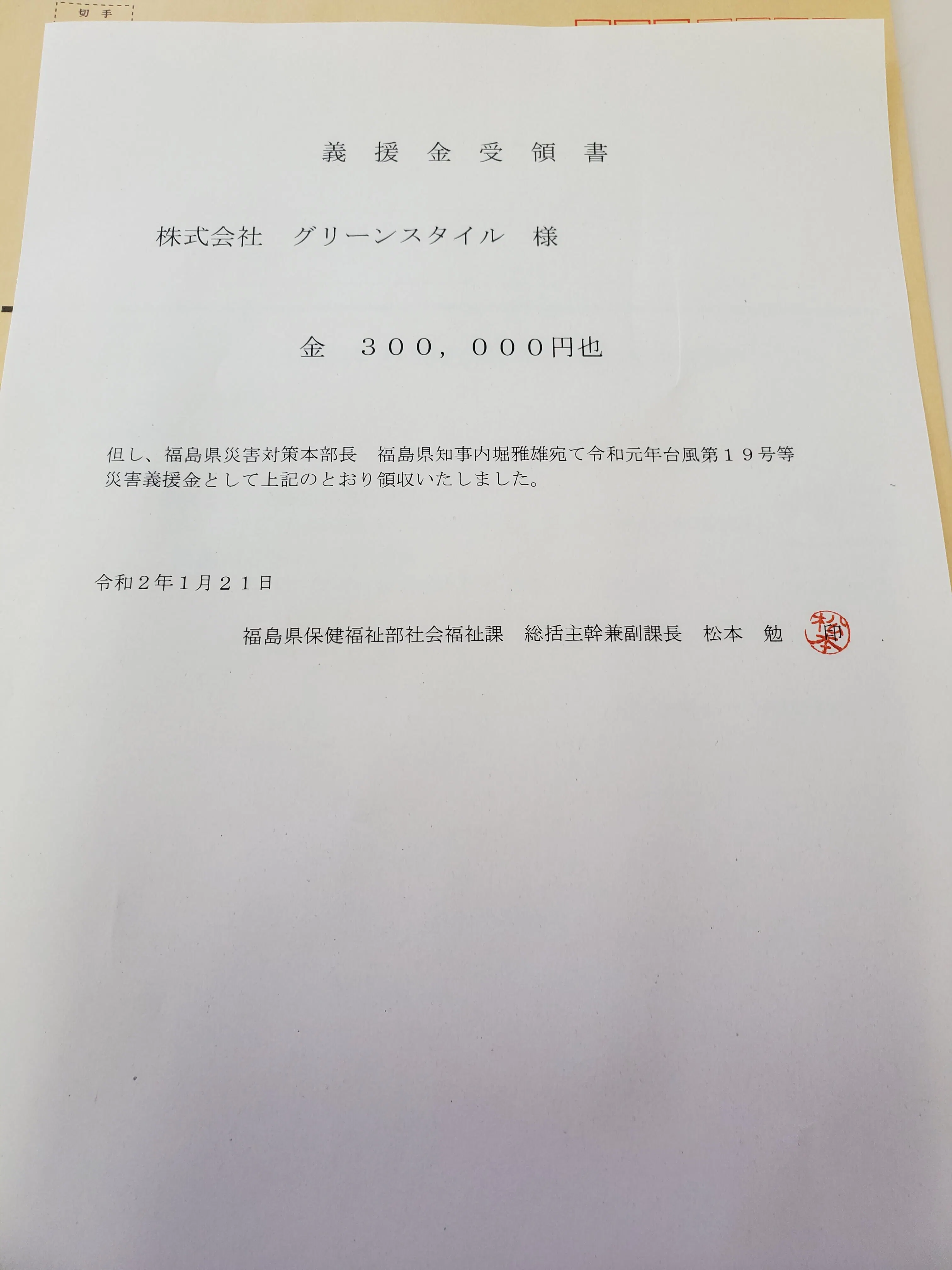 本日、福島県に義援金を寄付してきました。