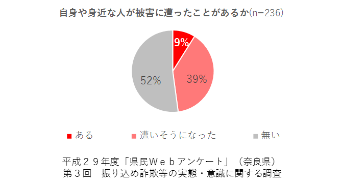 そして、恐ろしいことに、実際に半数近くの方が、自分や身近な人が被害に遭ったか、遭いそうになったことがあるのです。