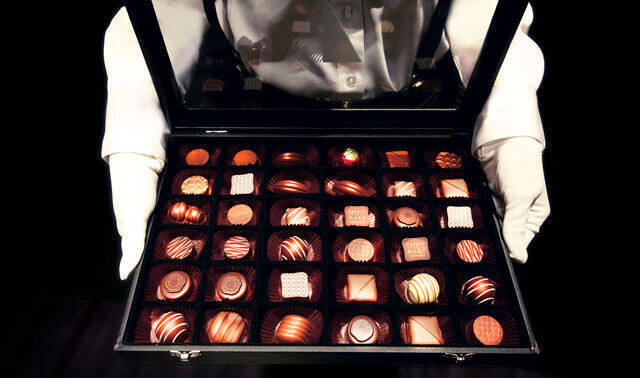 女性同伴でご来店いただいた際に当バー人気の『宝石箱チョコレート』より