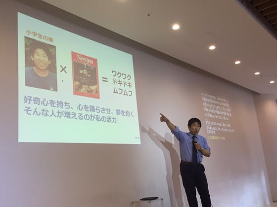 ちなみにですが、今回の画像は最後の20枚目のスライドです。僕の若かりし頃の写真とともに締め括りの話しをしている最中です。
