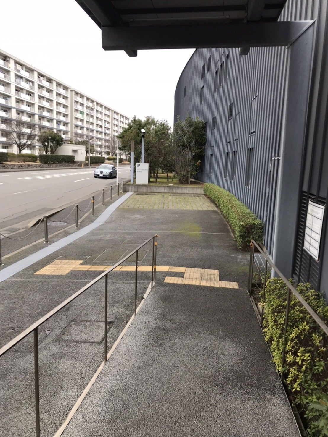 スロープを上ると入り口。ほどなくエレベーターにつながっていて、これならスムーズに搬入できそうです♡