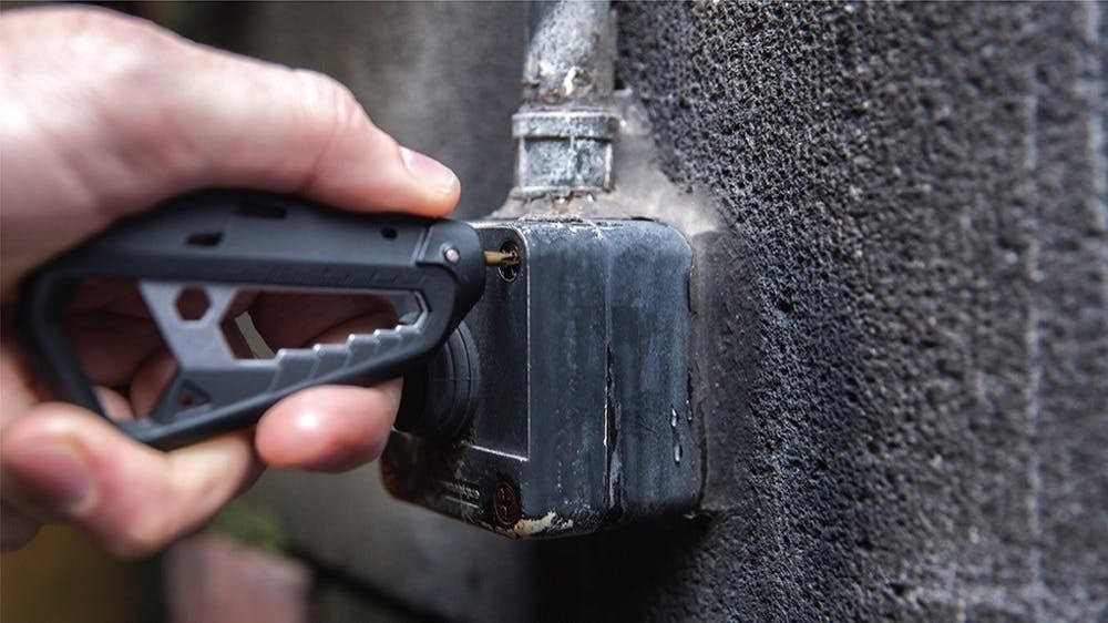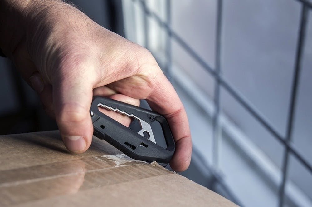 「M100.Xマルチツール」のボディと同じ頑丈な素材で作られたパッケージオープナーは、段ボールテープの切断に最適です。ブレードは金属製ではないので、指を切るほど鋭利ではありません。