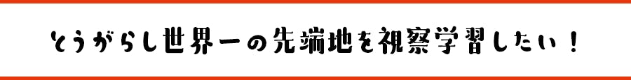 小さな村に根付いたとうがらしの文化を皆様の元へお届け出来る様、知識を吸収してまいります!