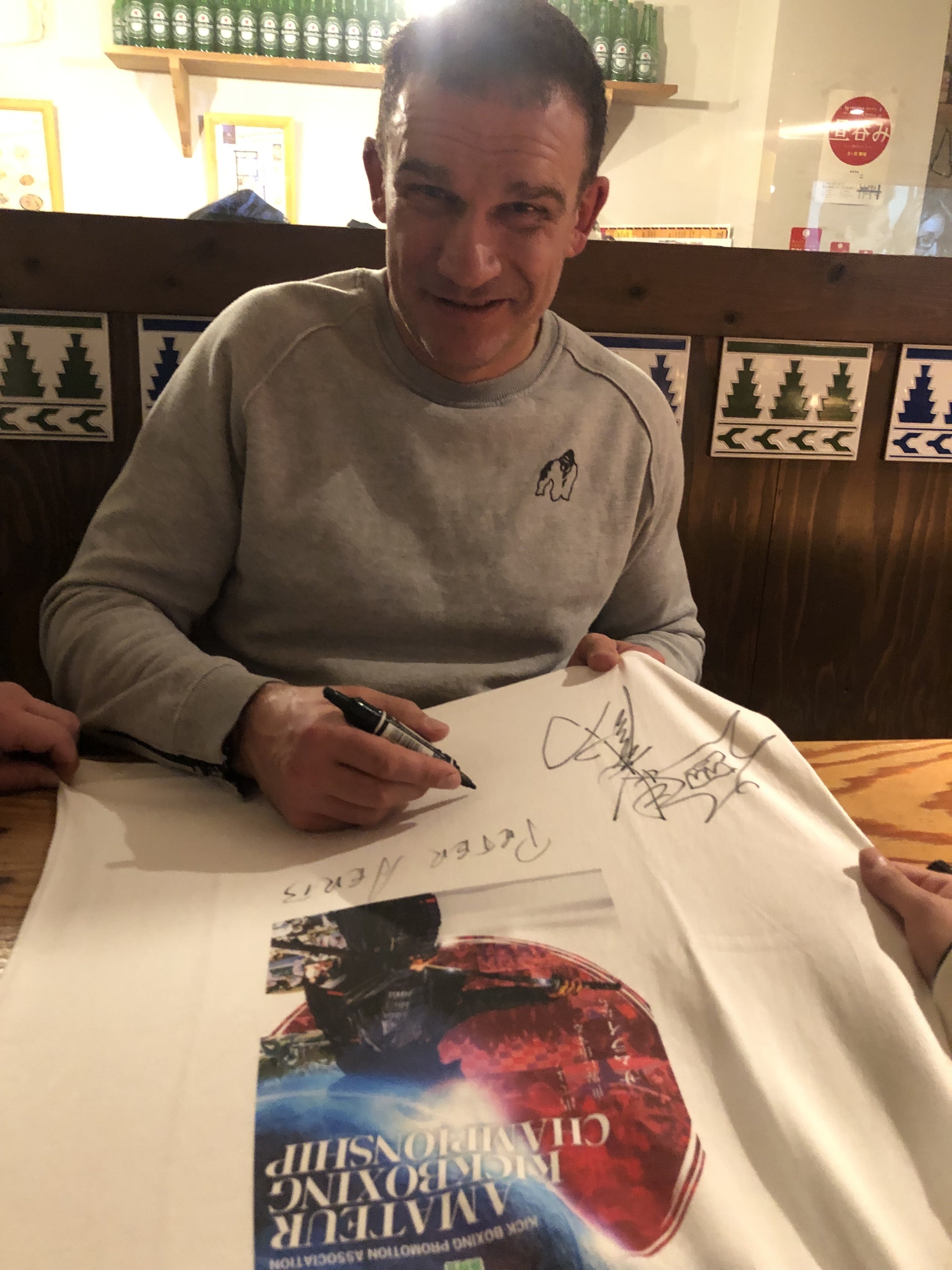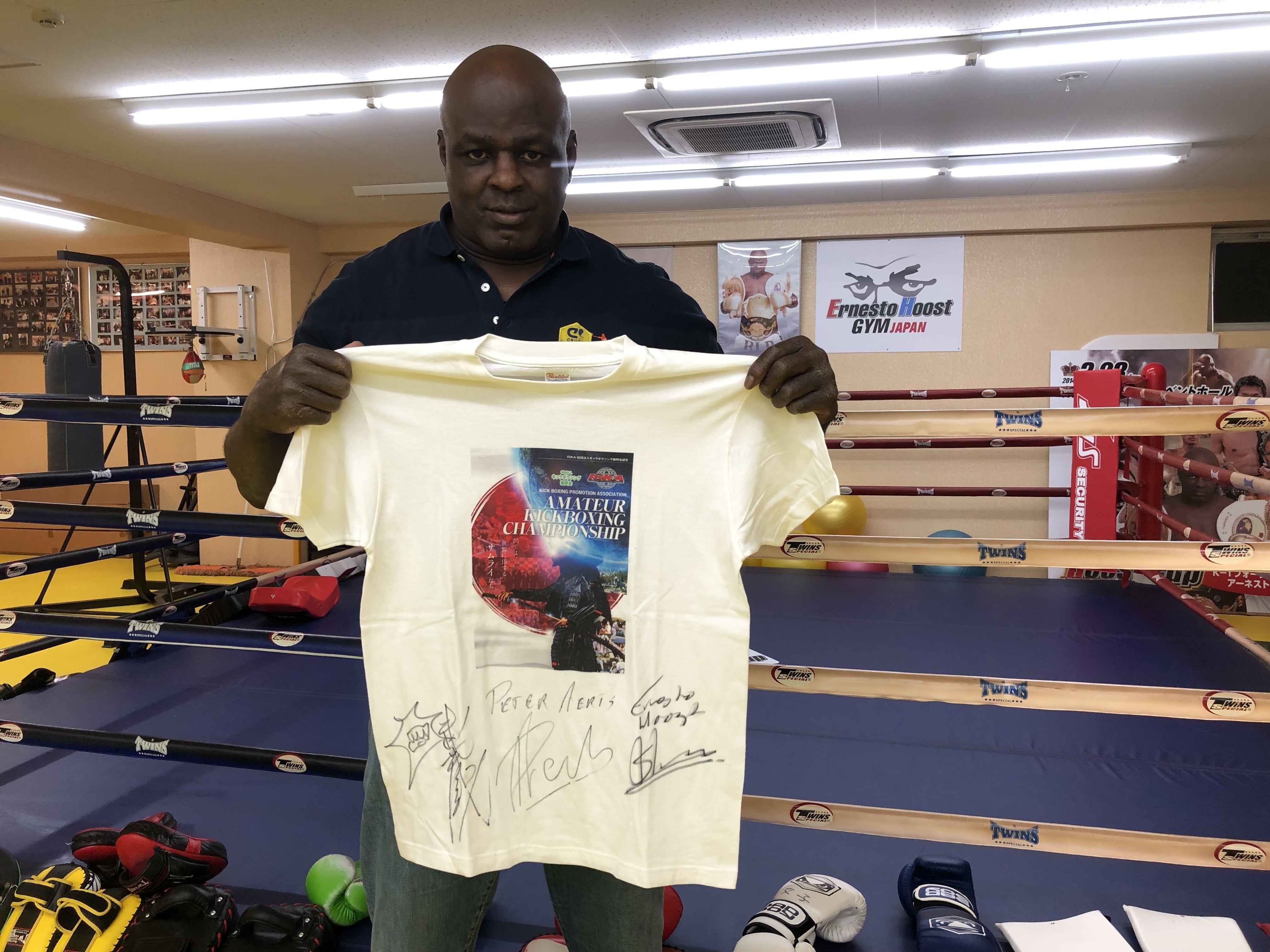 リターンといたしまして、ISKA選抜第1回全日本オープンアマチュアキックボクシング選手権大会記念Tシャツ、アーネストホースト氏、ピーター・アーツ氏、武蔵氏はじめ有名LEGENDファイターのサイン入り大会記念Tシャツや、サイン入りグローブをご用意いたします!