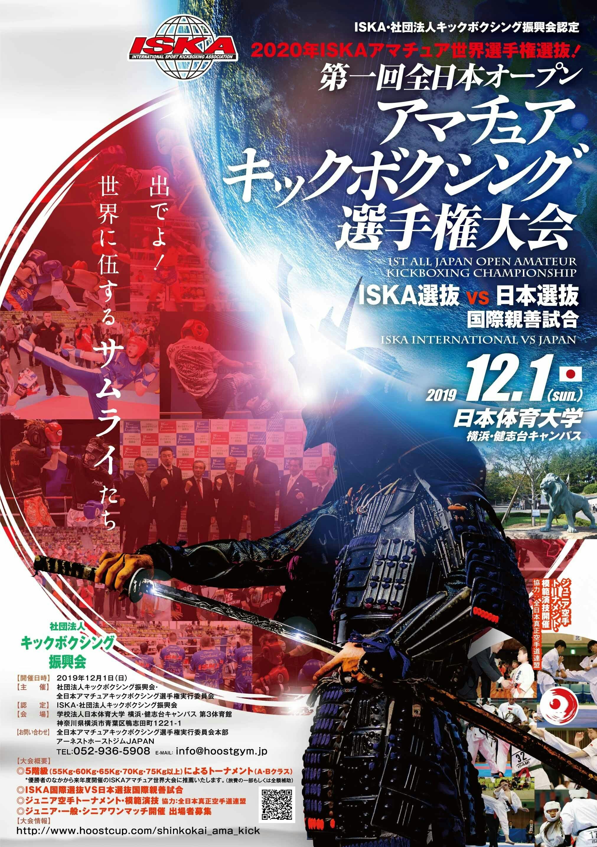 当振興会主催大会は、社団法人キックボクシング振興会 相談役である、学校法人日本体育大学 横浜健志台キャンパスにて開催され、中部地区予選、京滋地区予選優秀選手、協力団体(JAPAN KICK INNOVATION、MA日本キックボクシング連盟、NKB、REBELSほか)推薦選抜選手や、ISKA(International Sport Karate Association)のご協力のもと、スペイン、モンゴル、中国からの選抜選手が参加され、2020年フロリダにて開催のISKAアマチュア世界大会に推薦選抜を兼ねて開催いたしました。 ハイレベルな試合が多く、海外選手、中部、西日本のトップ選手と関東圏の強豪選手が激突し、国際交流やキックボクシングの競技化に向けて大きく前進いたしました。今大会の入賞選手は、来年6月中旬にフロリダのディズニーワールドで開催されるISKAアマチュア世界大会への出場権が得られ、MVP選手を中心に主催、社団法人キックボクシング振興会より旅費の補助やサポートを行います。