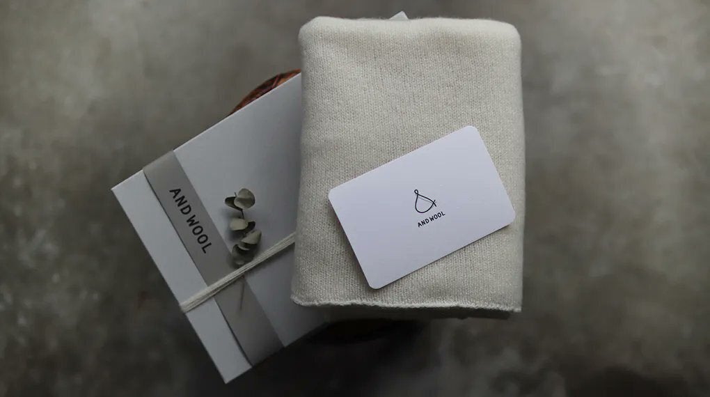 【AND WOOL】の上質でやさしいニット製品を大切な方に届けたい、そんな方に利用していただきたいと思い、特別なギフトボックスもご用意しました。製品と合わせてご希望された方には、梱包した状態でお届けします。
