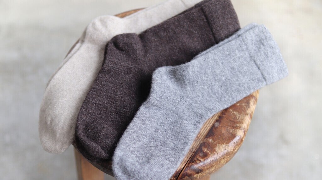 「あたたかくて、やわらかくて、締め付けすぎず、重ね履きもできて、靴が履けるように厚すぎない」そんな「みんなにやさしい靴下を作ってほしい」という要望をいただいて、スタッフみんなで試行錯誤しながら作り上げた靴下です。非常になめらかで肌触りもよくやさしい履き心地の靴下ができあがりました。
