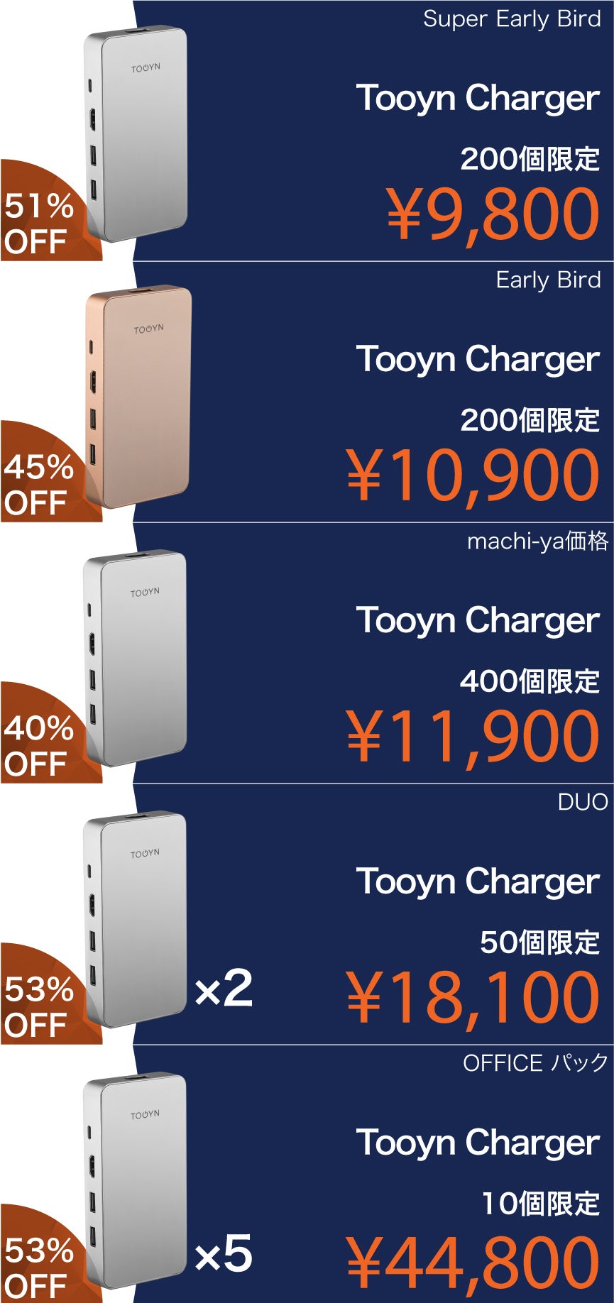 こんにちは、みなさん。 私たちはTooyn Tech Inc.です。 ここ、mach-yaでクラウドファンディングキャンペーンを開始することをとても楽しみにしています! ワイヤレス充電機能を備えたスリムでスタイリッシュなMacbook充電器とUSB-Cハブをバックする機会をお見逃しなく。 よろしくお願いします。