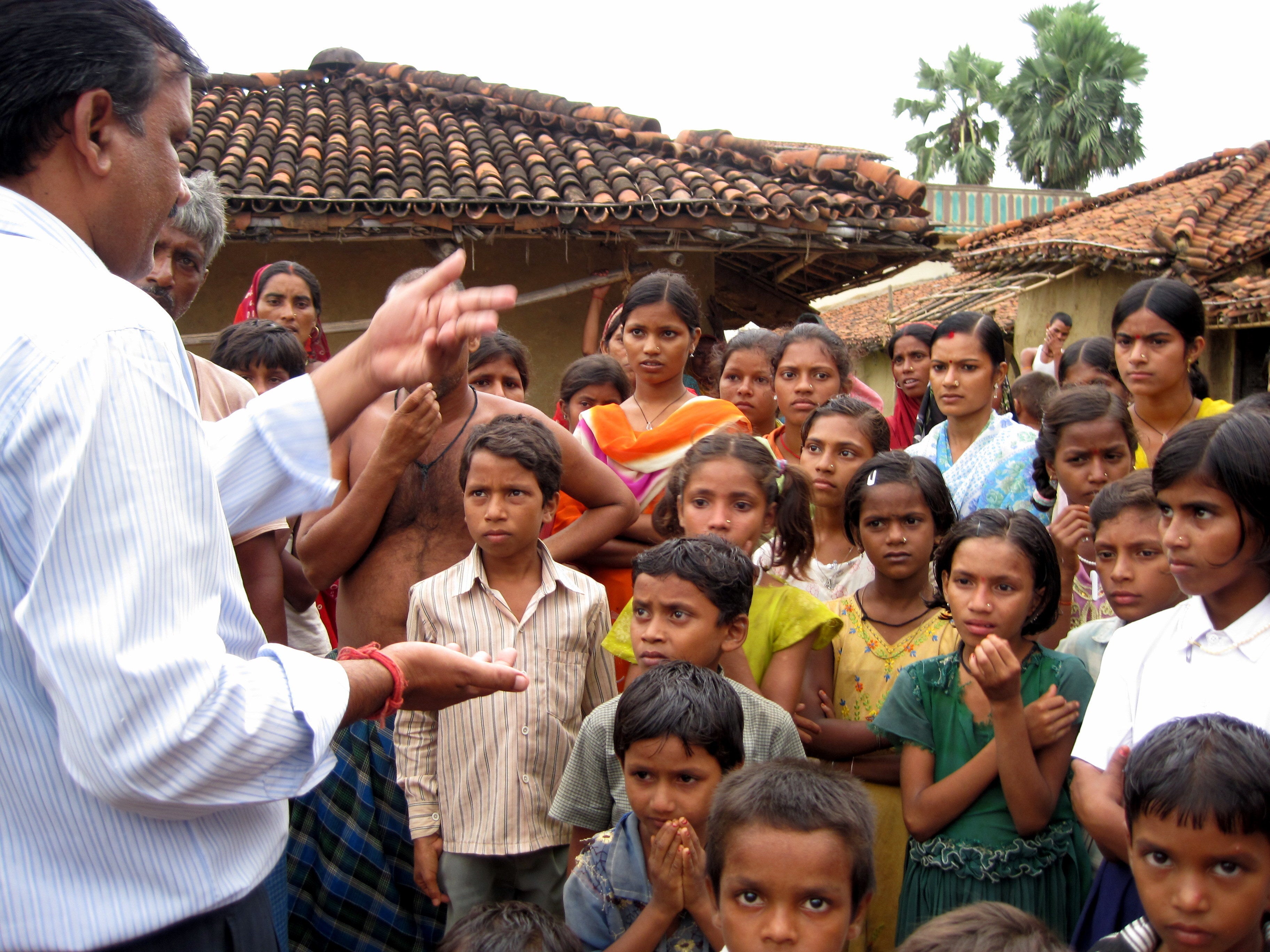 村の大人たちのほとんどが教育を受けてこなかったので、「教育の重要性」を理解してもらうことは容易ではありませんでした。そこで、BEAMスクールの建設を進める傍ら、先生や学校スタッフは村中を一軒一軒まわり、教育を受けることの大切さを伝え、子どもたちを学校に通わせるよう説得しました。村人に教育の重要性を説く現地NGO ディベントラ氏