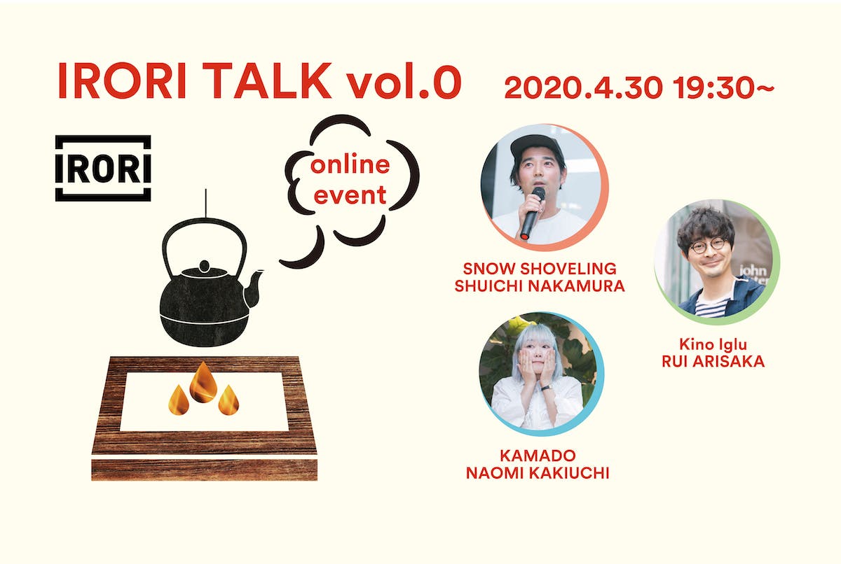 囲炉裏は、伝統的な日本の家屋に床や四角く切って開け灰 を敷き詰め、薪や炭火などを熾すために設けられた一角の こと。囲炉裏と同じように皆んなの多様な価値観が集まり 、話し合える場になりますように・・・。の、オンライントーク イベントがIRORI TALKです。