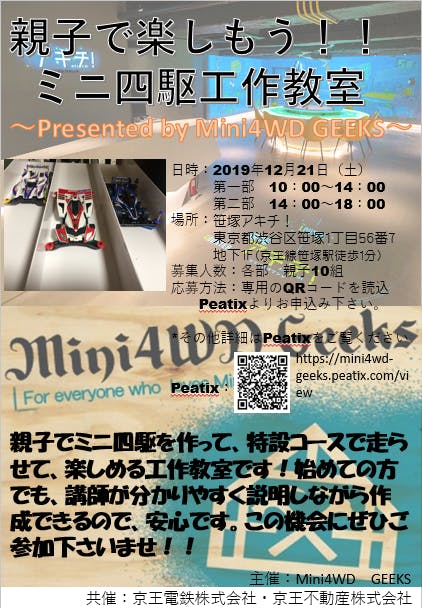 新しいMini4wd GEEKSの事業に賛同してくれる方、